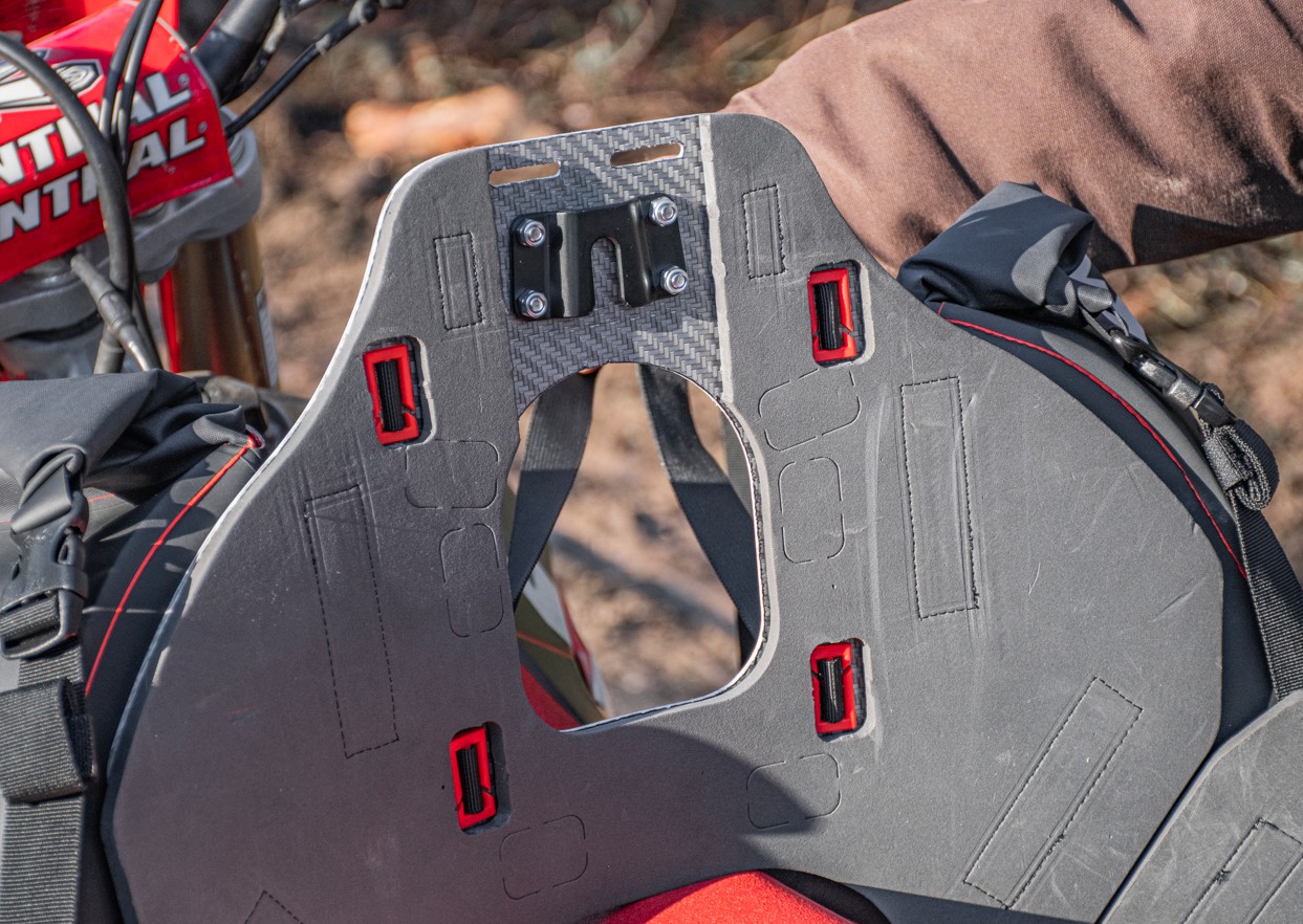 Le système se compose de deux éléments : une plaque de montage fixée directement au sac Hailstorm, et l’Anchor Point qui est boulonné sur le garde-boue arrière en plastique ou sur un porte-bagages / une plaque arrière. Toutes les vis et tous les écrous nécessaires au montage sont inclus. Une fois installé, le Hailstorm peut être monté et retiré à l’arrière en quelques secondes de manière sûre, fiable et avec une installation propre sur la moto.