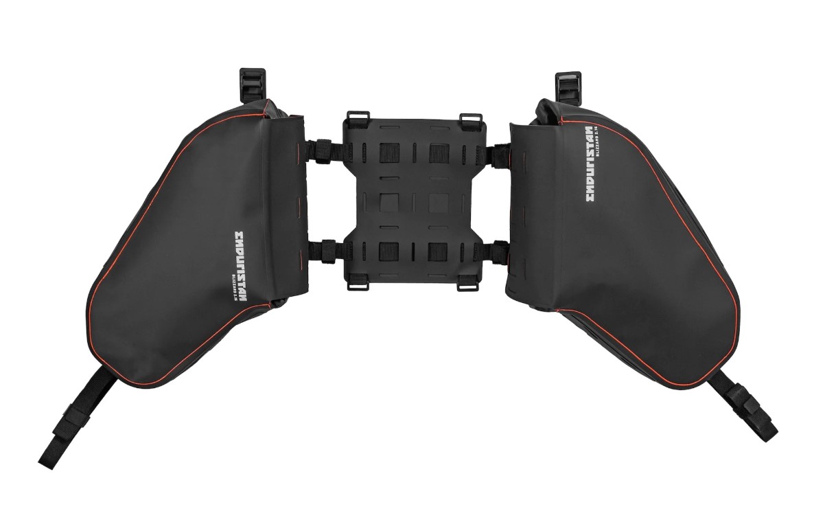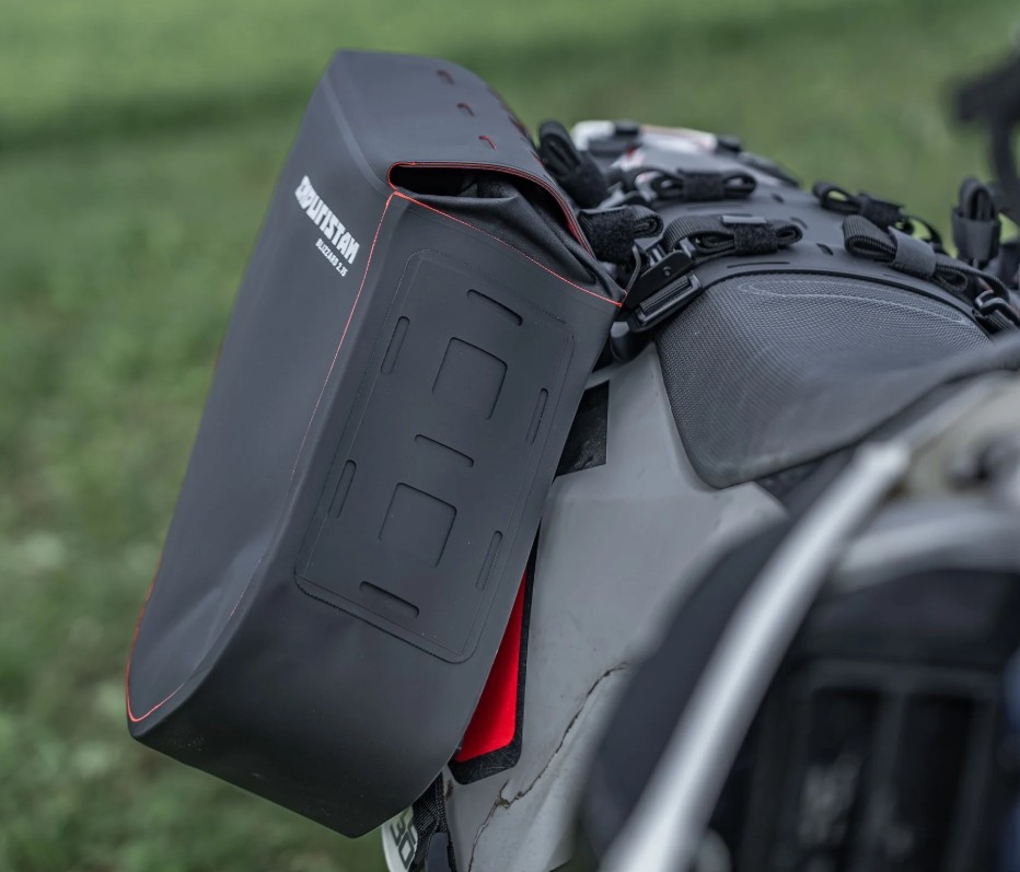 Vous pouvez augmenter individuellement le volume des bagages des sacs en utilisant les sept coussinets de fixation brevetés : trois sur chaque sac et un sur le siège. L’interface du siège est si fine qu’elle ne vous dérange pas pendant la conduite, même lors d’aventures offraod lorsque vous glissez vers l’arrière. Vous pouvez également rouler avec un passager tant qu’aucun sac supplémentaire n’est monté sur le siège !