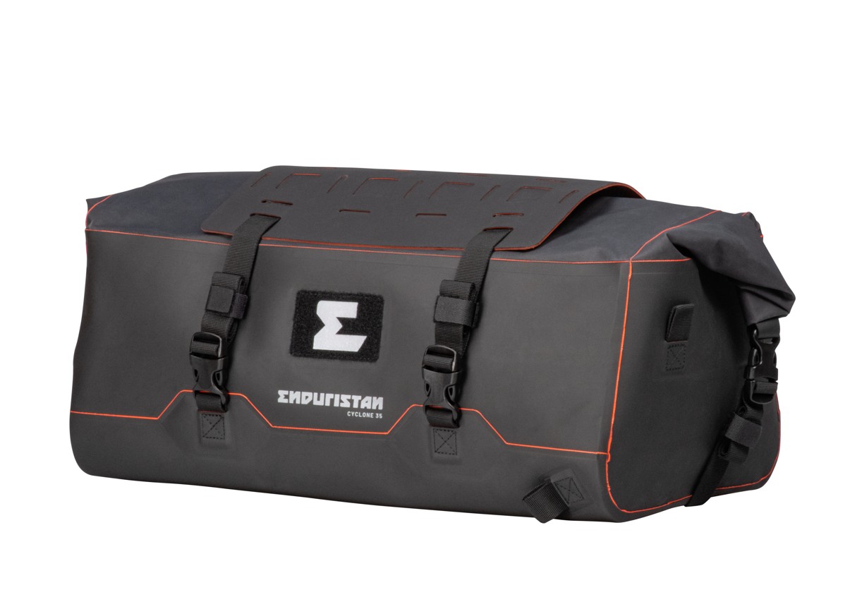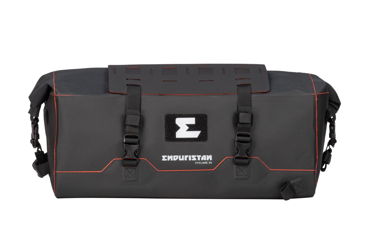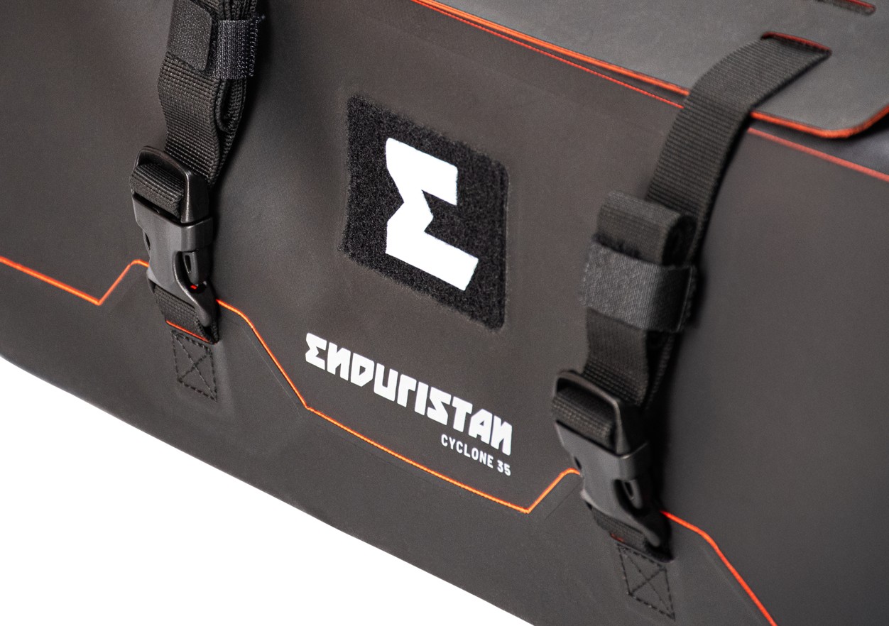 Le montage sur la moto est simple et sûr grâce aux passages dédiés aux sangles ROKstraps (disponibles ici), qui maintiennent le sac fermement en place, même sur terrain accidenté. Un fond plat aide le Cyclone à conserver sa forme pendant le chargement et facilite l’organisation du contenu, sur et hors de la moto.