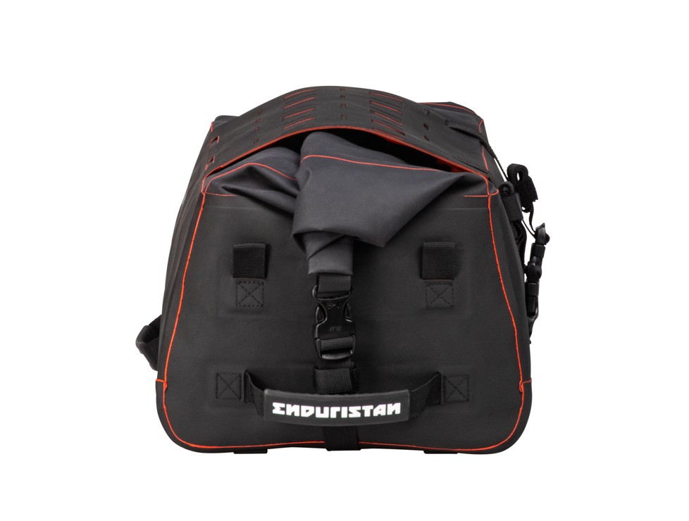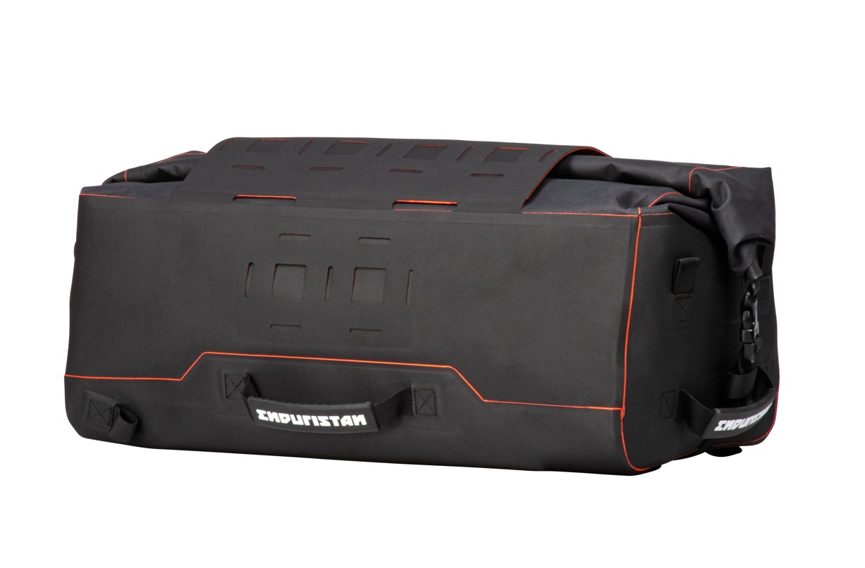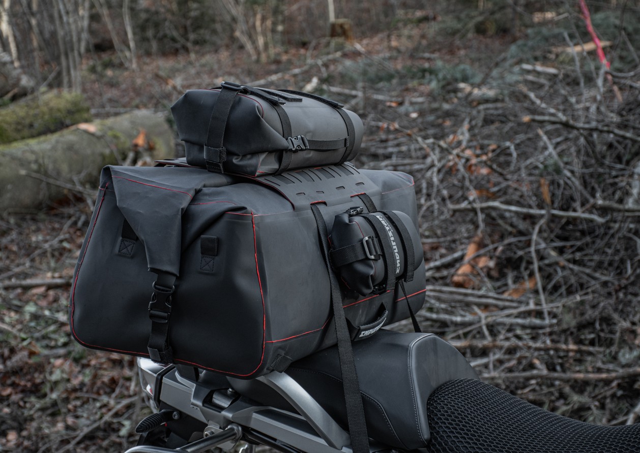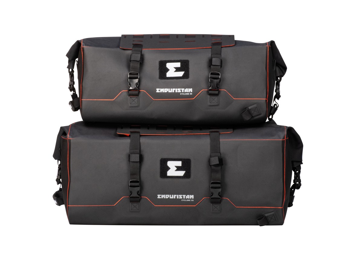 Le montage sur la moto est simple et sûr grâce aux passages dédiés aux sangles ROKstraps (disponibles ici), qui maintiennent le sac fermement en place, même sur terrain accidenté. Un fond plat aide le Cyclone à conserver sa forme pendant le chargement et facilite l’organisation du contenu, sur et hors de la moto.