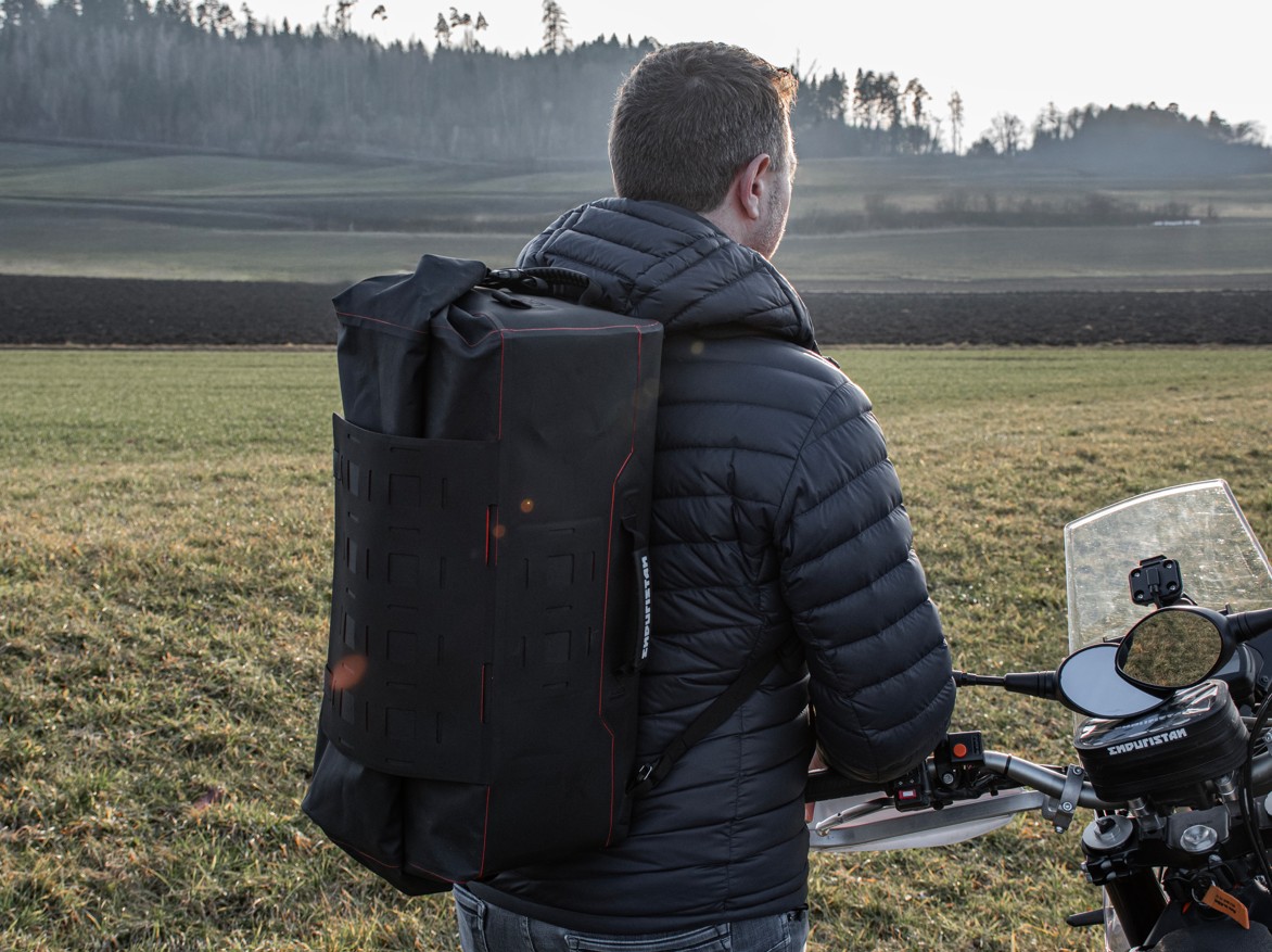 Le 4-Point Duffle Harness inclus permet de transformer le Cyclone en sac à dos. Deux poignées de transport, une sur le dessus et une sur le côté, rendent le Cyclone facile à manipuler dans toutes les situations. Comme tous les produits Enduristan, le Cyclone est entièrement étanche à l’eau, à la poussière, à la boue et à la neige. Aucun sac intérieur n’est nécessaire et il est conçu spécifiquement pour une utilisation à moto.