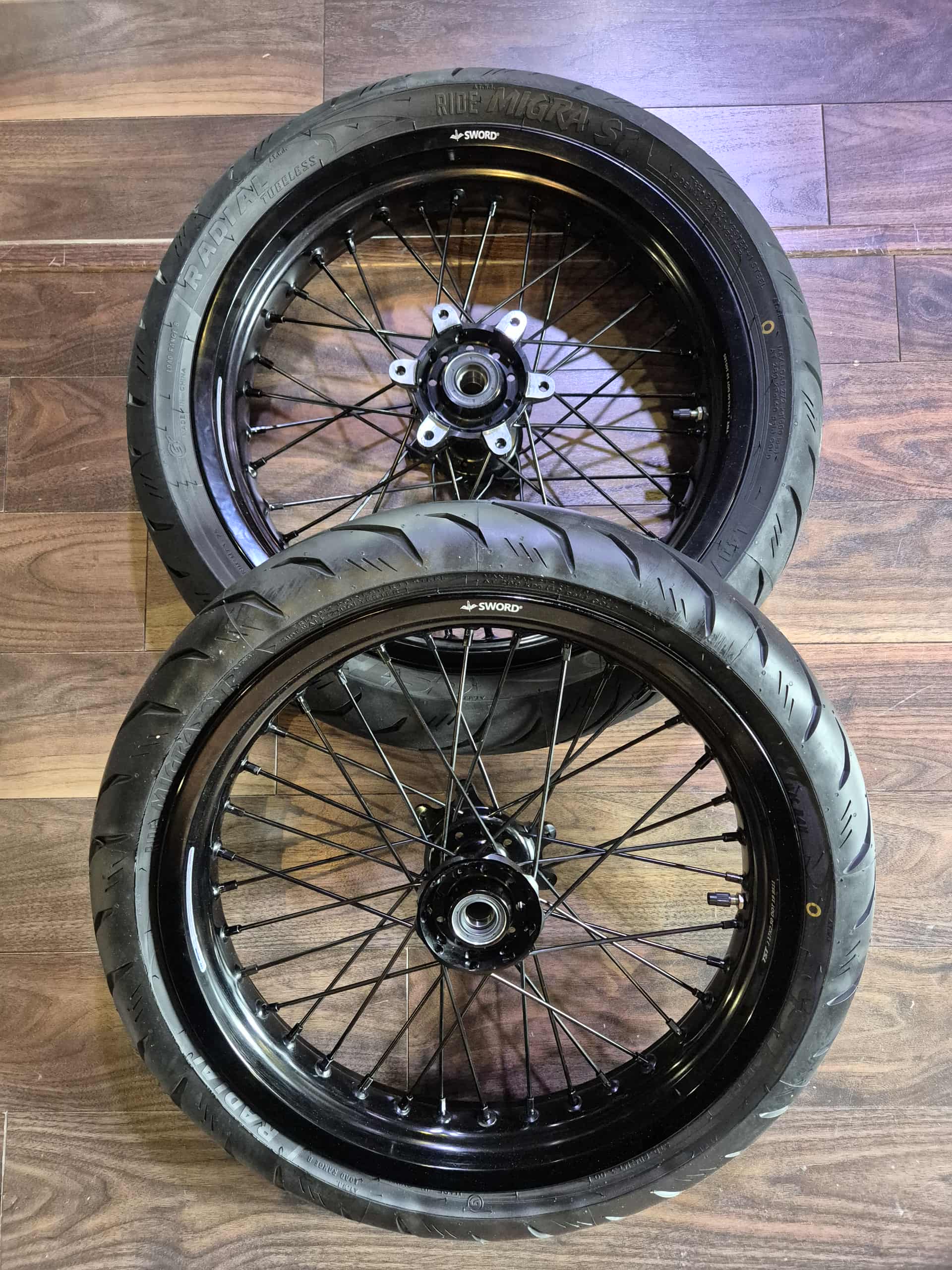 Kit de jantes 17 pouces renforcées TST Sword pour transformer votre Surron Ultra Bee en version supermotard.